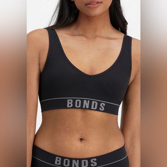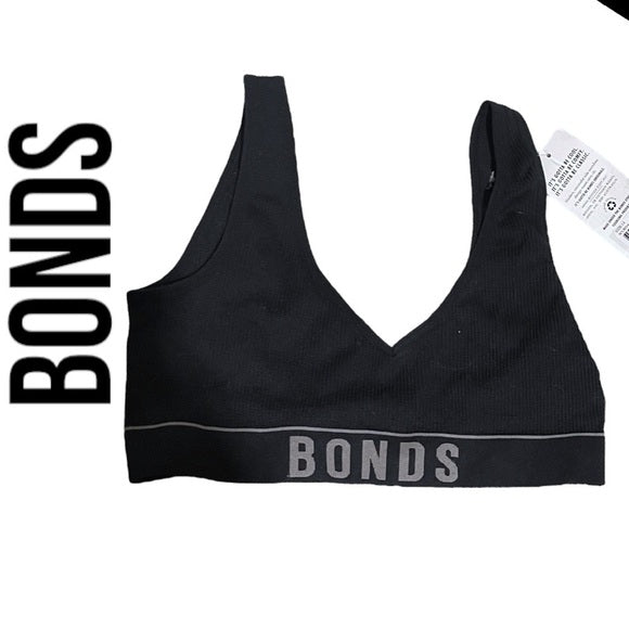 Bonds wireless RETRO RIB DEEP V CROP bra new