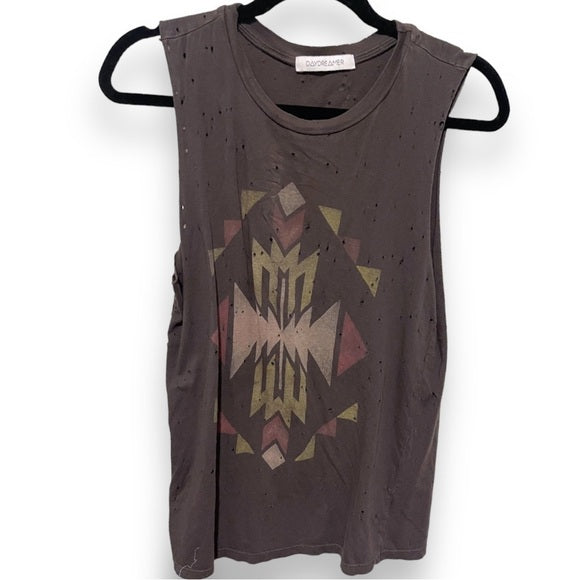 Daydreamer Aztec boho distressed top