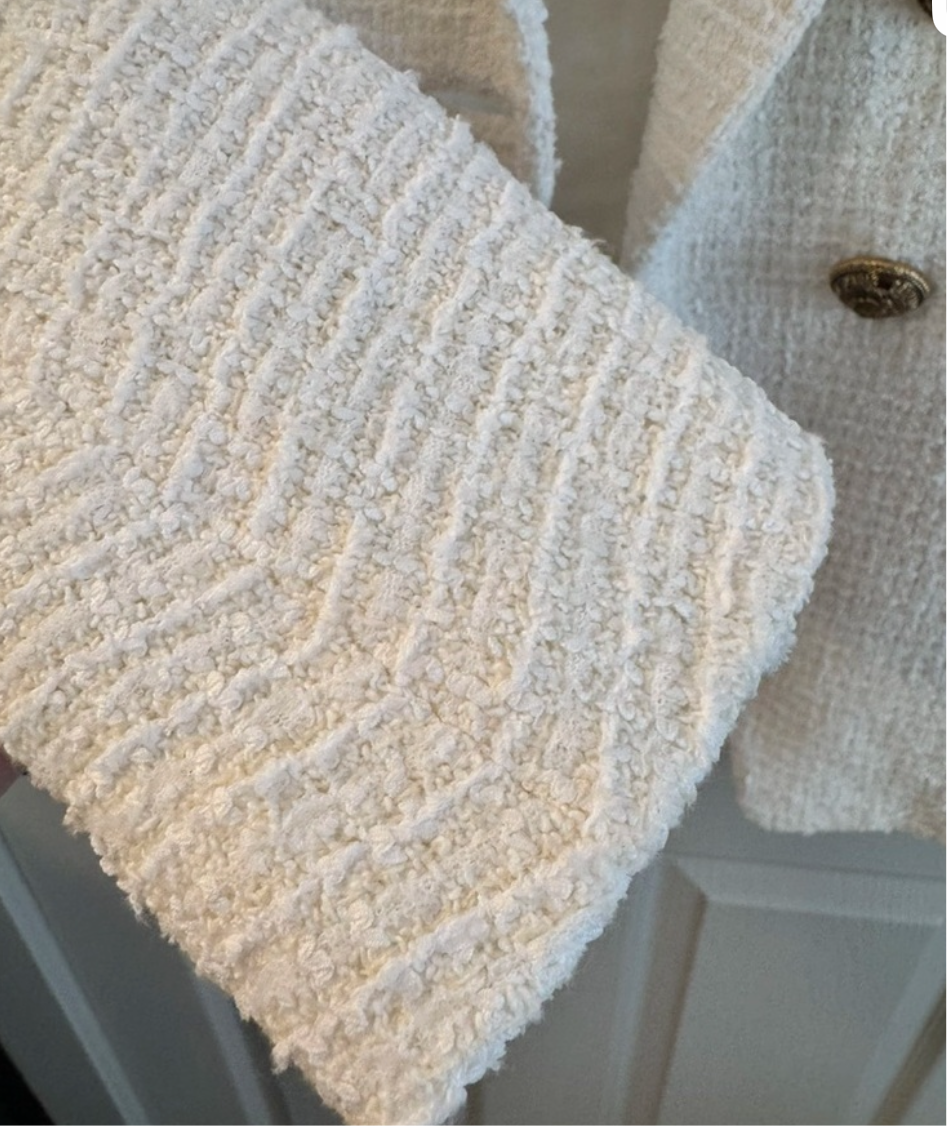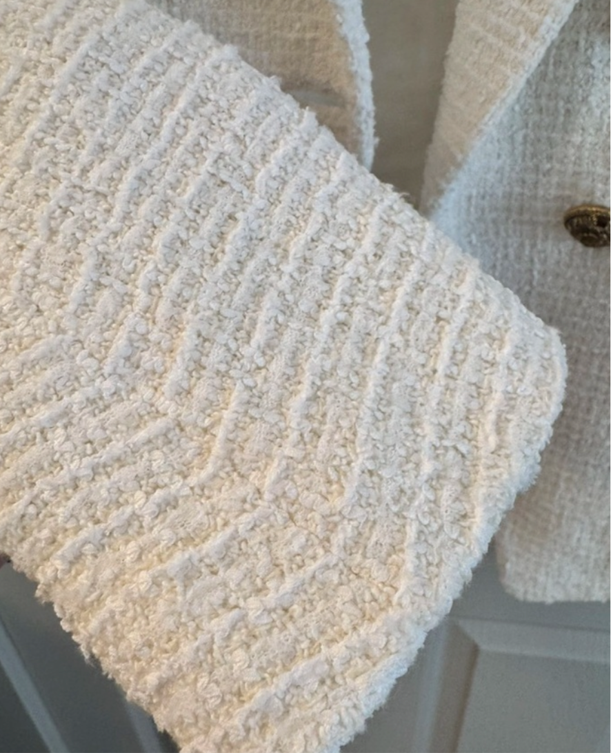 This sophisticated Balmain blazer in crisp white features a tailored fit and structured shoulders, offering a polished and timeless look. Its luxurious texture and classic design make it ideal for professional or formal occasions. Like new