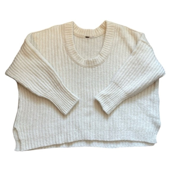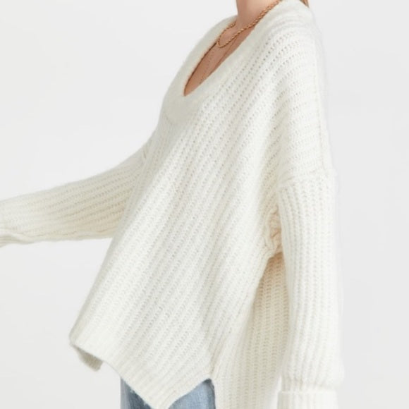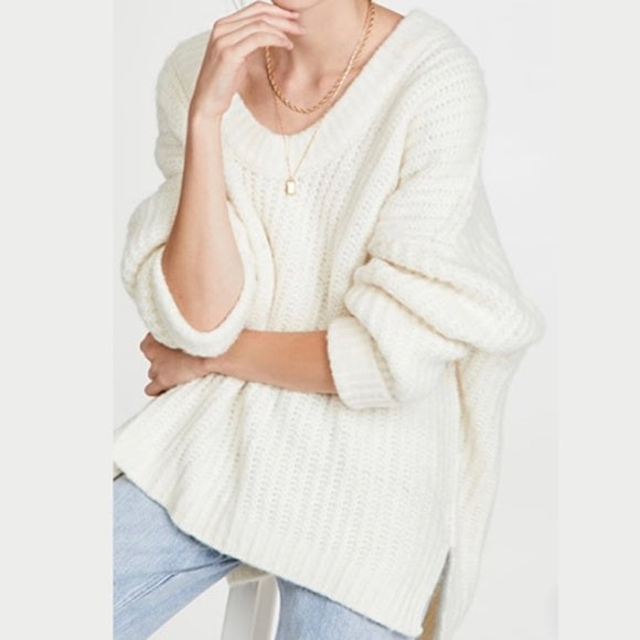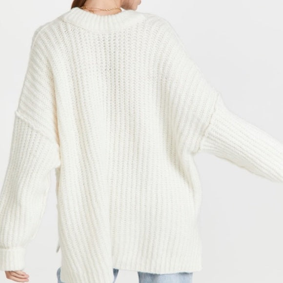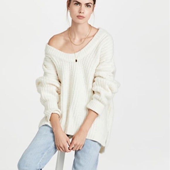 Like new Free People Oversized Ivory Blue Bell V neck Chunky Sweater