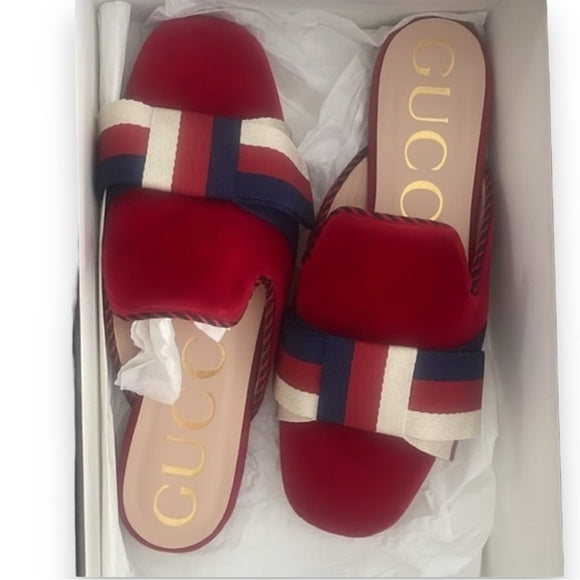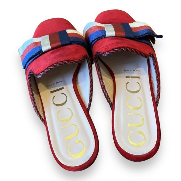 Like new GUCCI Ribbon Suede Sandal Red Authentic