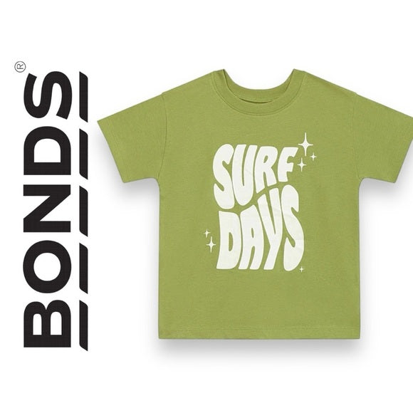 New Bonds Kids Short Sleeve Crew Tee - Surf Days Thyme Is Money Green -
