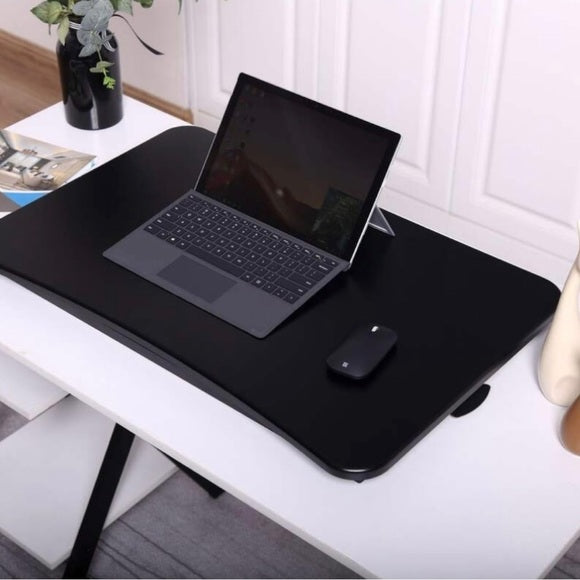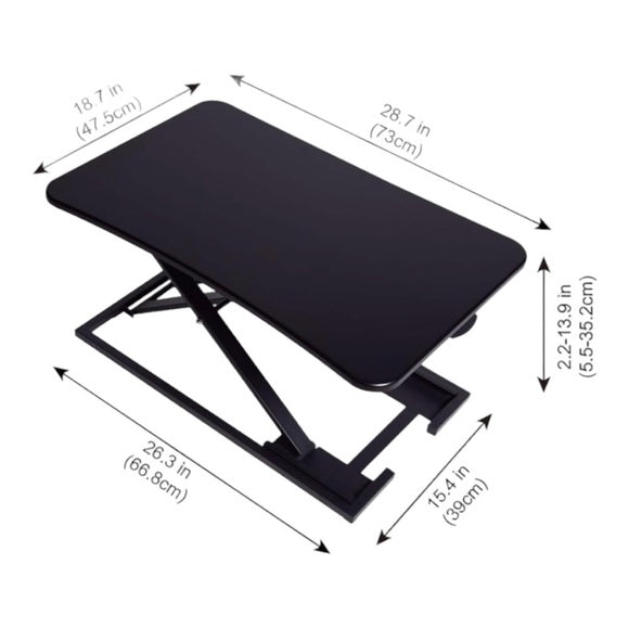 It's an ideal choice for use at the office or at home to maintain comfort while you get things done. Transitioning between sitting and standing throughout the day provides numerous health benefits such as increased blood flow and reduced aches and pains. Standing throughout the day also helps the mind stay alert and productive. Built with versatility in mind, this standing desk converter can also be used while sitting when you need a little break. The tabletop standing desk converter can be adjusted to your perfect height level with unlimited adjustable points between 2" and 15.8" from the base so you can stand and sit as you please. This ergonomic height range allows you to adjust the height based on your comfort level, so you can easily maintain proper posture and back alignment for fewer back injuries and greater comfort. The stand adjusts easily and can be converted quickly. Just squeeze the handle to release the lock lifting mechanism and adjust to your desired height. It also boasts a compact design that fits in small spaces while providing plenty of room for your monitor, laptop, keyboard, mouse, and more. You'll also love that this stand up desk converter comes ready to use
