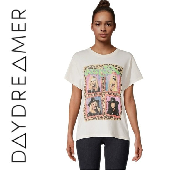 Step back to 1987 in Daydreamer's tour tee tributing Poison’s smash single and first top 40 hit in the U.S., “Talk Dirty to Me.” Cementing Poison as a top act of the `80s is an exclusive rendition of the group’s debut album artwork featuring glam headshots of the original four members in a leopard frame. This tee is stamped with Poison’s authentic logo accented in green and purple.