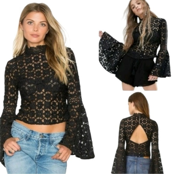 New free people crochet flare sleeved top