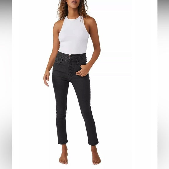 New FREE PEOPLEWOMENS BLACK SKYLINE SKINNY JEAN