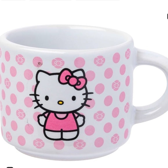 New Sanrio Hello Kitty Polka Dots 4pc Stackable Ceramic Espresso Small C…