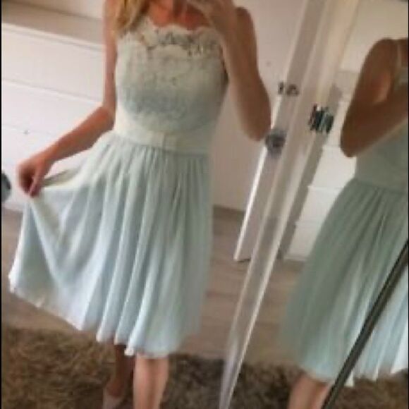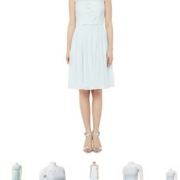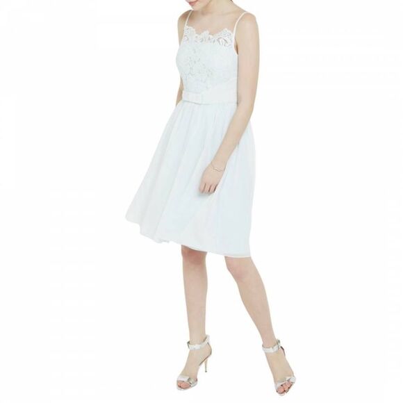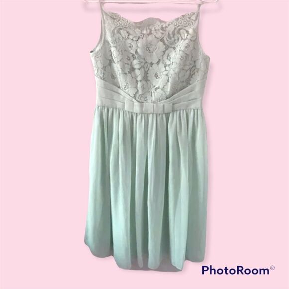 Straight neckline, spaghetti straps, lace bodice with bow detail, chiffon skirt, fully lined