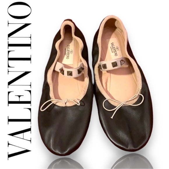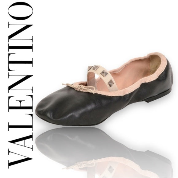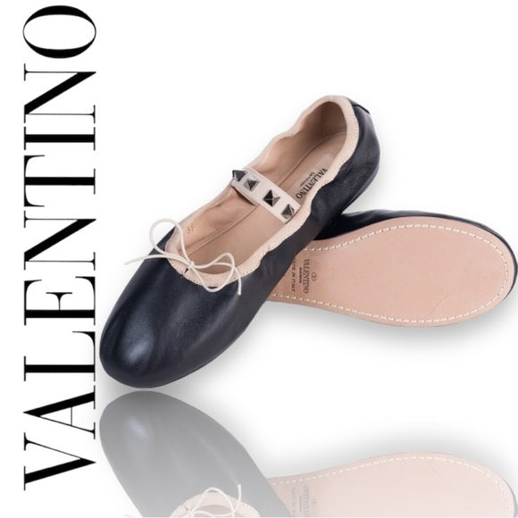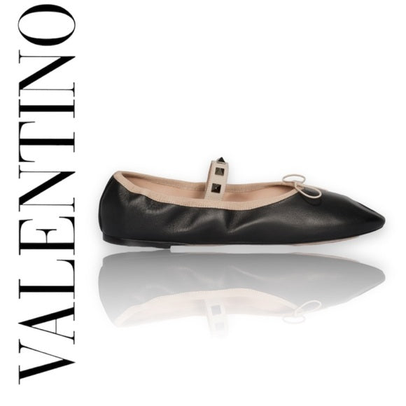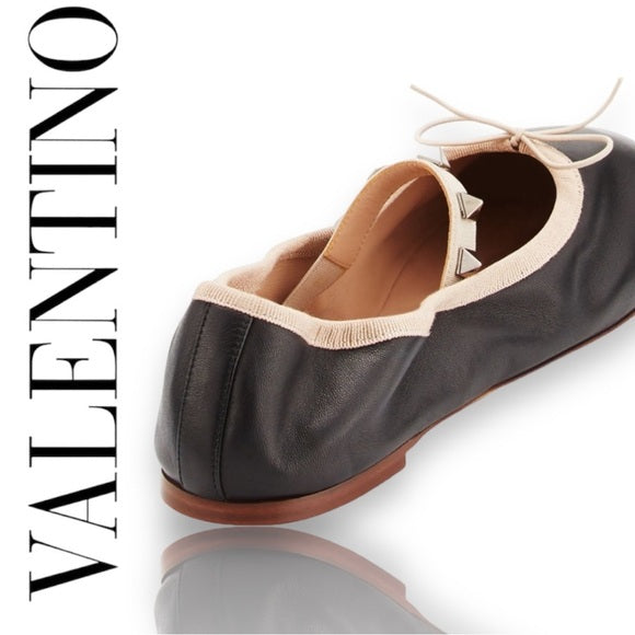 New Valentino Rockstud Leather Ballerina Flat authentic