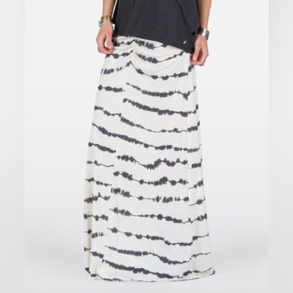 Flaunt a casual-cool silhouette in this comfy tie-dye maxi skirt with figure-flattering shirred details.