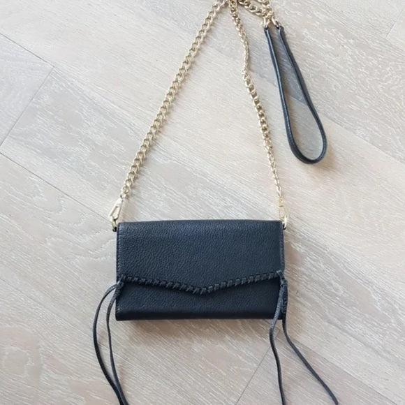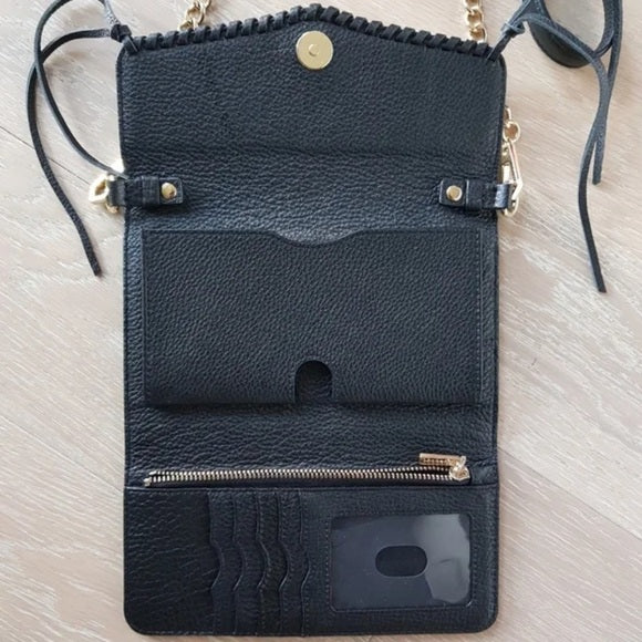 Rebecca Minkoff Convertible Fringe universal Phone Case Crossbody Bag/Wallet black leather new